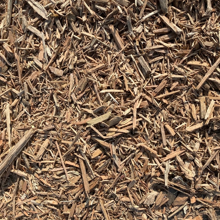 Made from used shipping pallets and the cut ends of new construction projects, this wood mulch is composed of approximately 60-70% western softwoods and 30-40% eastern hardwoods.